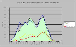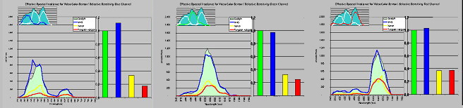 Figure 11 first shows the summary for blue, green and red channel (from top to bottom). At figure 12 the ratio of total (100%) sensitivity for the three (3) channels is visualized.