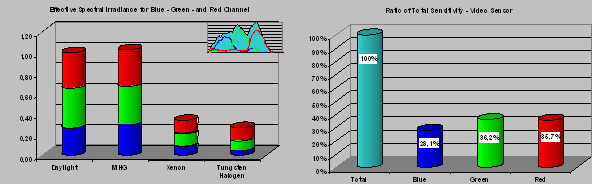 Figure 11 first shows the summary for blue, green and red channel (from top to bottom). At figure 12 the ratio of total (100%) sensitivity for the three (3) channels is visualized.